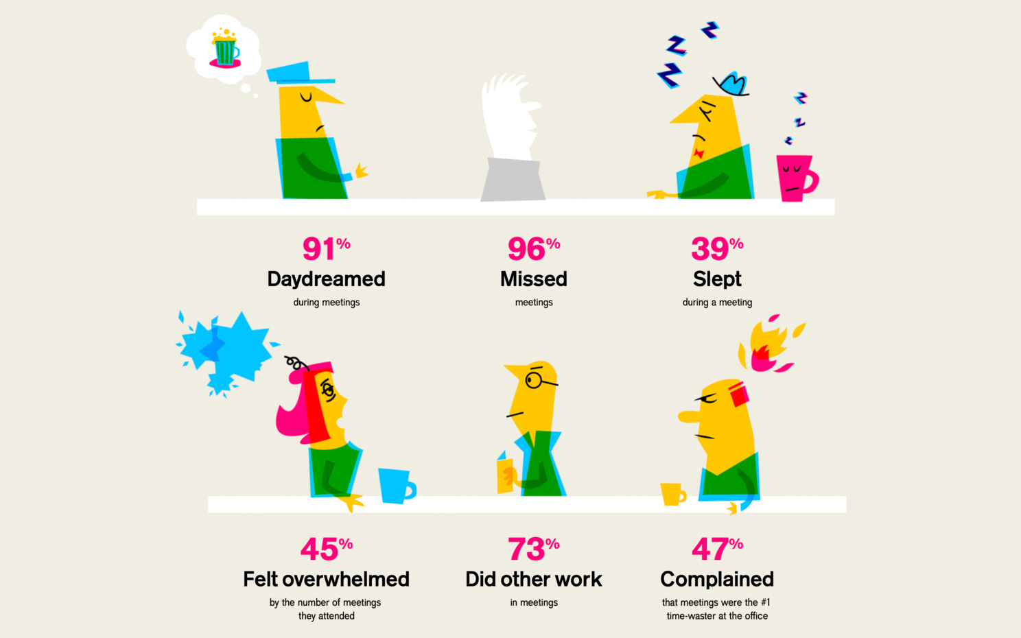 Every study that is done on meetings, formal or informal, reveals what we already know: they're often unproductive, a waste of time, and something people don't look forward to.