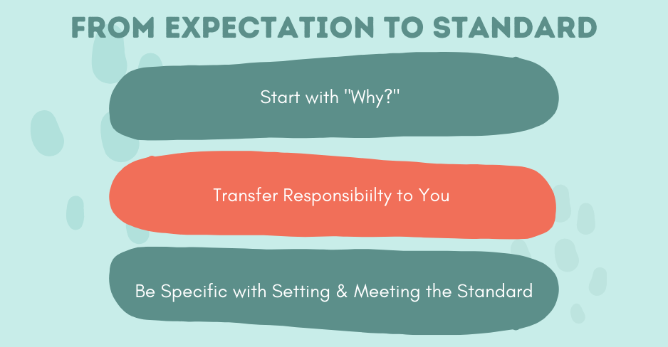 In addition to answering "why?" this step requires a mindset shift. When we set expectations in our relationships, they're for other people...we believe the responsibility is theirs to meet our expectations. On the other hand, when we set standards, the responsibility to meet them becomes ours.