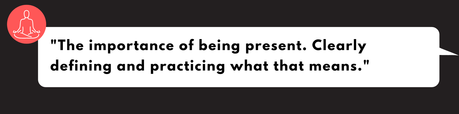 The Standard: To ensure people are present in my company, I'll tell them what it means to me in advance and ensure I practice those behaviors myself. I'll know if the standard was met based on a personal or mutual evaluation, and perhaps even my notes of what I observed.